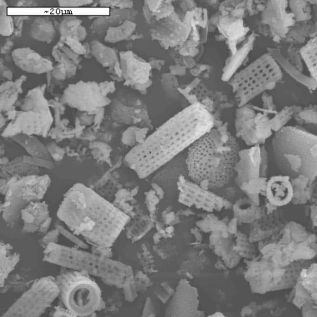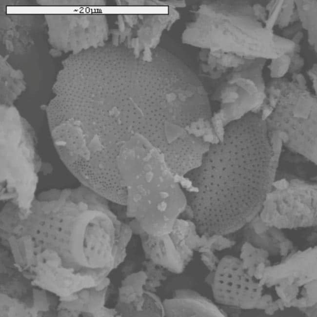 Έχει υψηλό πορώδες, χαμηλή πυκνότητα, έχει εγγενή σταθερότητα (χημική και θερμική) και δεν περιέχει υπολείμματα ξένων συστατικών εκτός από αργίλους. Η πρώτη ύλη περνάει μια σειρά διαδικασιών: ξήρανση, άλεσμα και ταξινόμηση με αέρα ώστε το τελικό προϊόν να αποτελείται κυρίως από διοξείδιο του πυριτίου και πρόσμιξη αργίλων και είναι πρακτικά αδρανές με τελικό προϊόν μια υπόλευκη σκόνη.