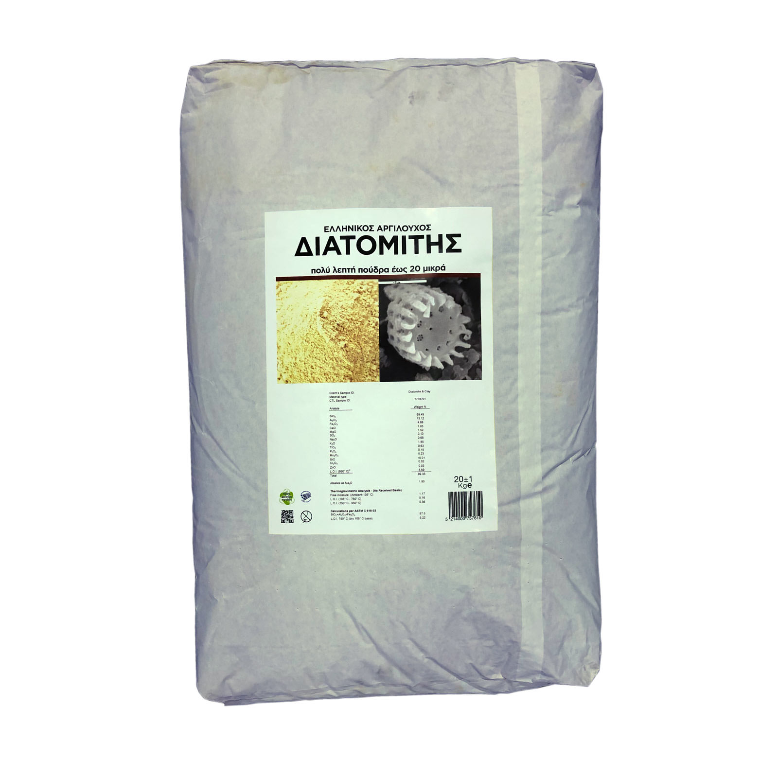 Ελληνικός αργιλούχος διατομίτης – Πολύ λεπτή πούδρα 20 μικρών – Φυσικό εντομοκτόνο για περιπατητικά έντομα και ακάρεα. Στην βιομηχανία χρησιμοποιείται στον καθαρισμό και τη διαχείριση του περιβάλλοντος. Συσκευασία 20 κιλών.