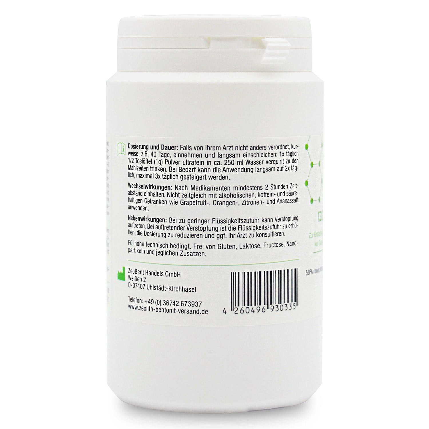 O Ζεόλιθος είναι ένα φυσικό ορυκτό. Η επίδραση της σκόνης του ζεόλιθου είναι καθαρά φυσική. Ο ζεόλιθος έχει οπές στη δομή του φυσικού του κρυσταλλικού πλέγματος. Αυτές οι οπές λειτουργούν σαν φίλτρο και δεσμεύουν στοιχεία όπως ο υδράργυρος, ο μόλυβδος, το κάδμιο, το αργίλιο, το αμμώνιο και η ισταμίνη. Για ένα βέλτιστο αποτέλεσμα, η επιφάνεια του ζεολίθου διευρύνεται με μικροποίηση. Η επίδραση του ζεολίθου εξαρτάται, μεταξύ άλλων, από το μέγεθος των κόκκων. Όσο πιο λεπτή είναι η πούδρα του ζεόλιθου, τόσο μικρότερη είναι η δόση. Όσο πιο σκληρός είναι ο ζεόλιθος, τόσο μεγαλύτερη είναι η δοσολογία. Η συγκεκριμένη πούδρα έχει μέσο μέγεθος κόκκων περίπου 5 μικρά.