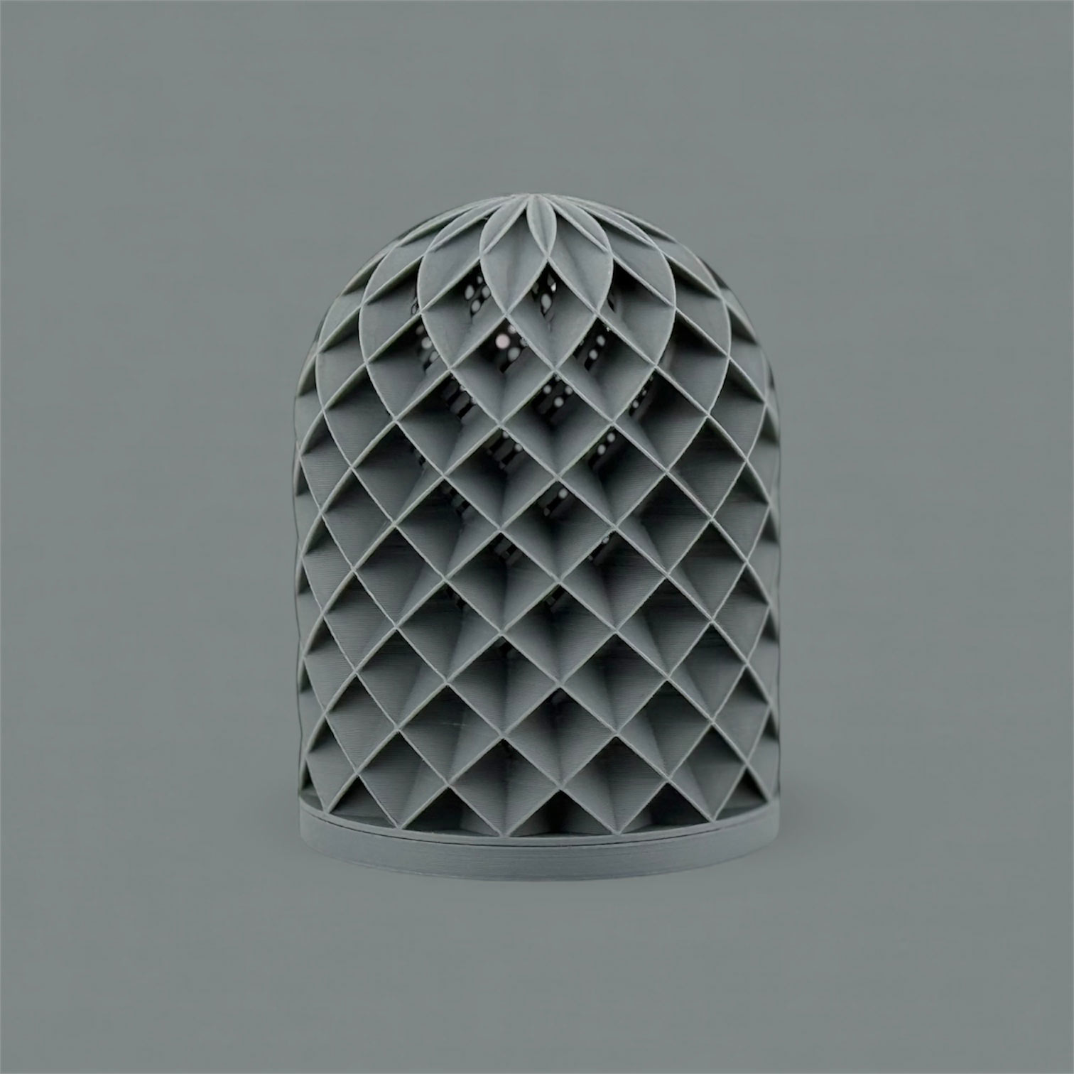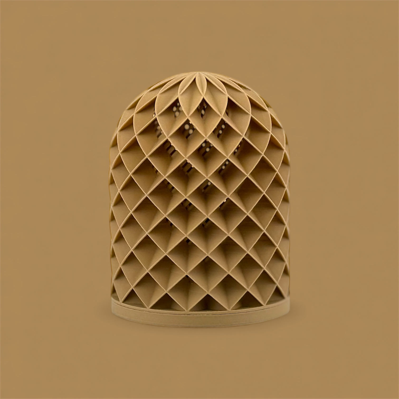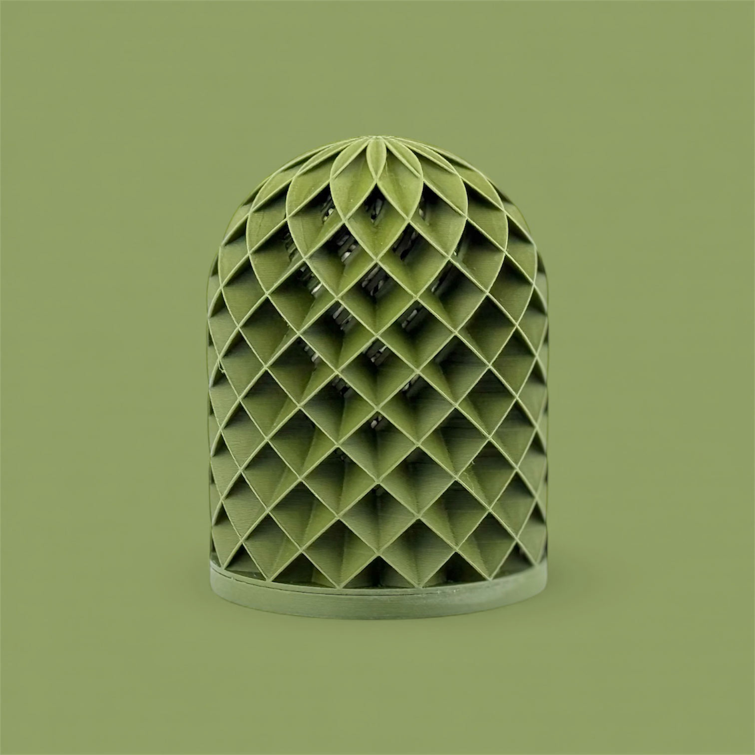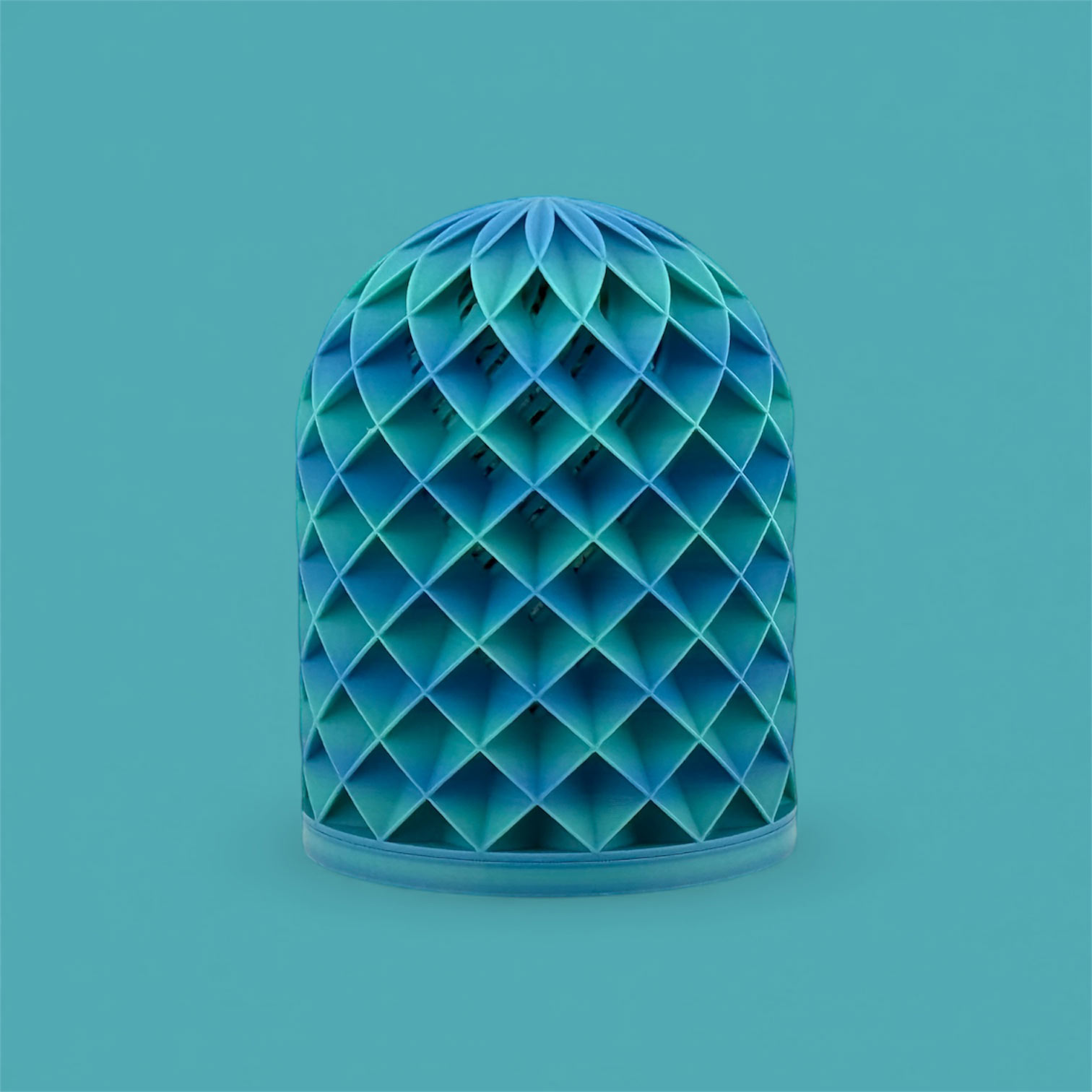 Το εξωτερικό κέλυφος παράγεται από ανακυκλώσιμο PLA και κατασκευάζεται με τεχνολογία 3D printing, εξασφαλίζοντας χαμηλή ενεργειακή κατανάλωση και σχεδόν μηδενική σπατάλη υλικού. Κάθε κομμάτι είναι μοναδικό και διατίθεται σε ποικιλία minimal και μοντέρνων χρωμάτων.