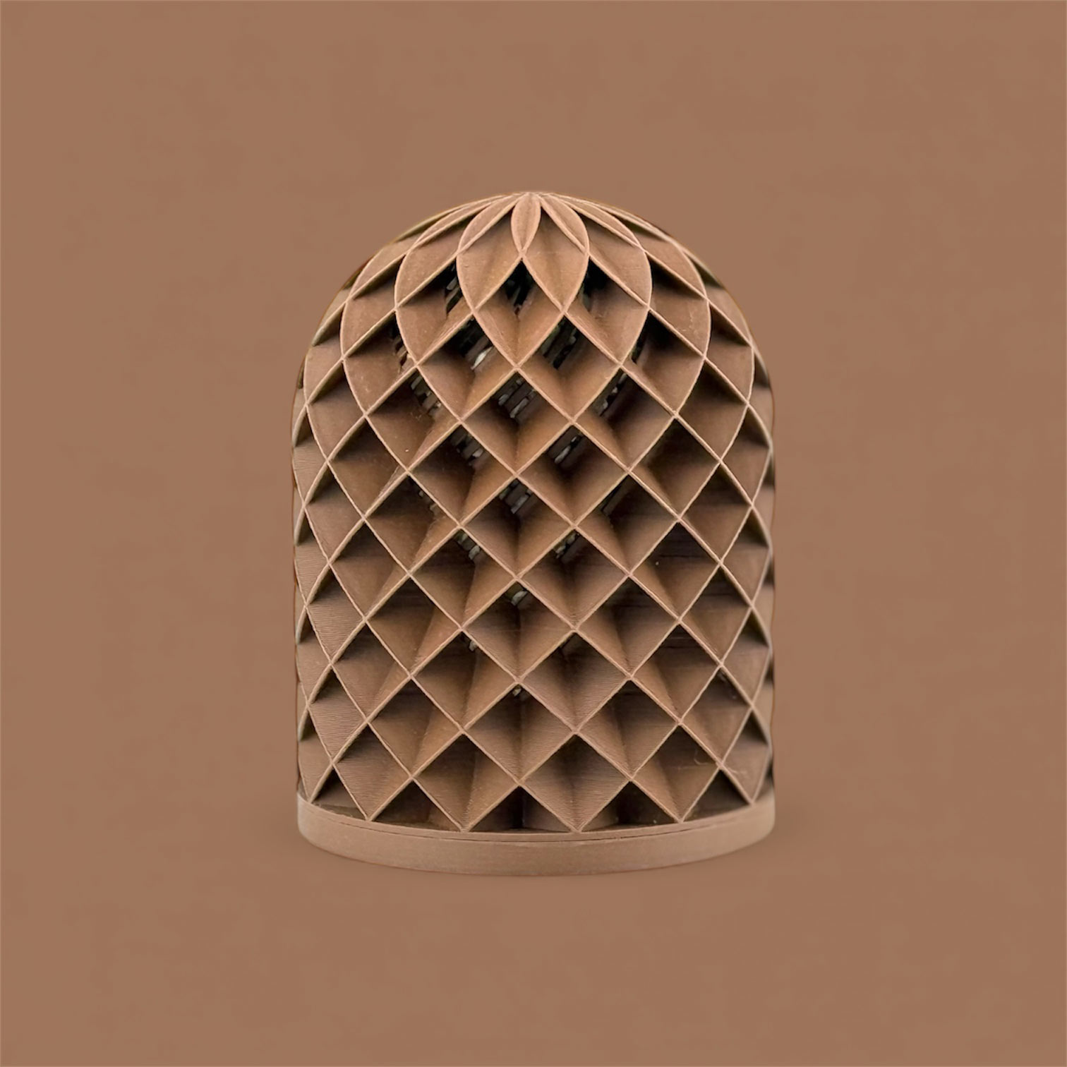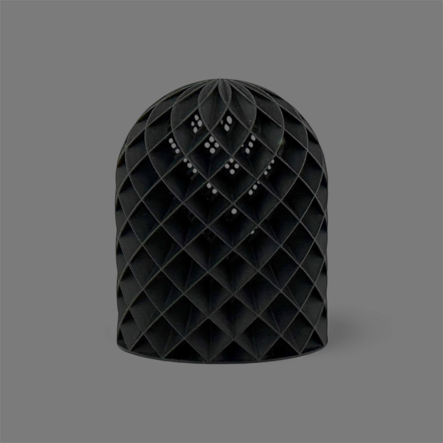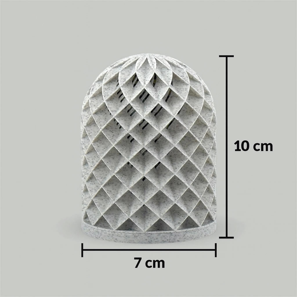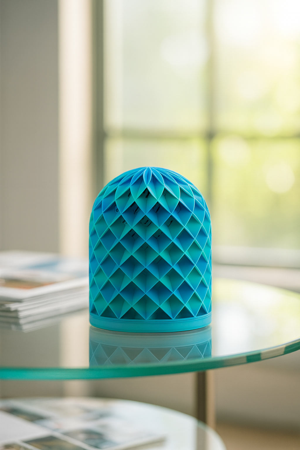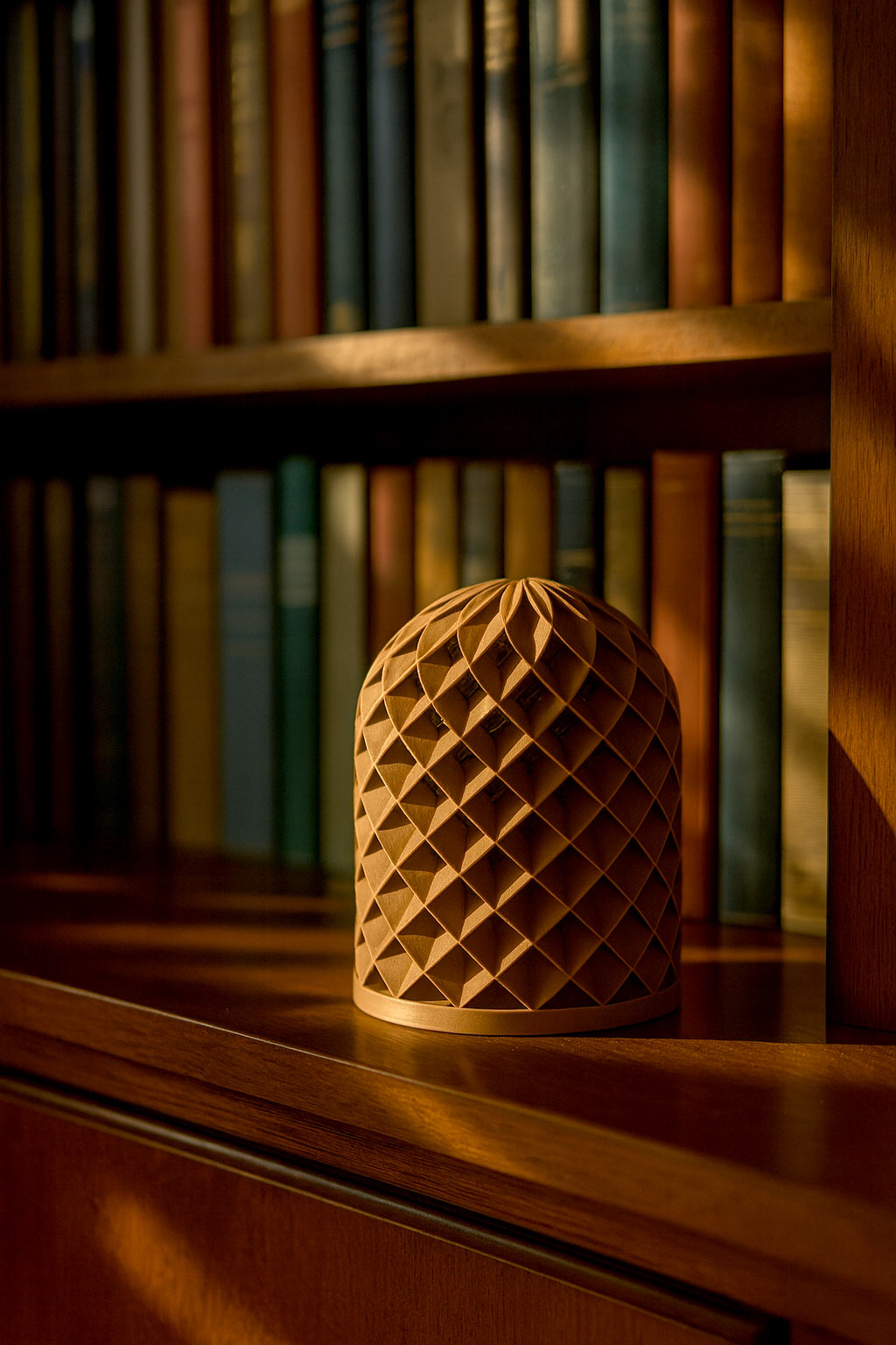 Το εξωτερικό κέλυφος παράγεται από ανακυκλώσιμο PLA και κατασκευάζεται με τεχνολογία 3D printing, εξασφαλίζοντας χαμηλή ενεργειακή κατανάλωση και σχεδόν μηδενική σπατάλη υλικού. Κάθε κομμάτι είναι μοναδικό και διατίθεται σε ποικιλία minimal και μοντέρνων χρωμάτων.