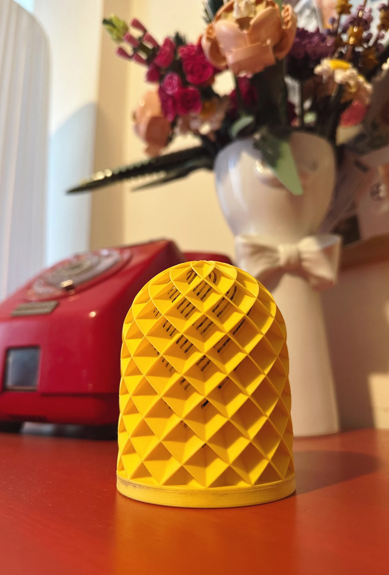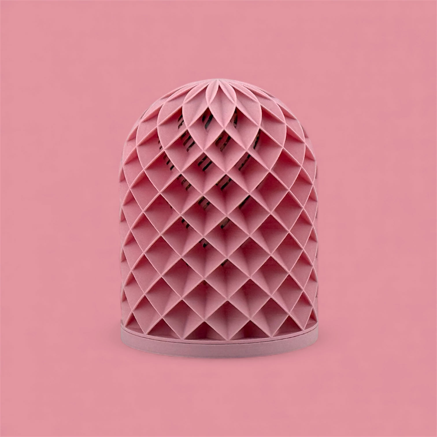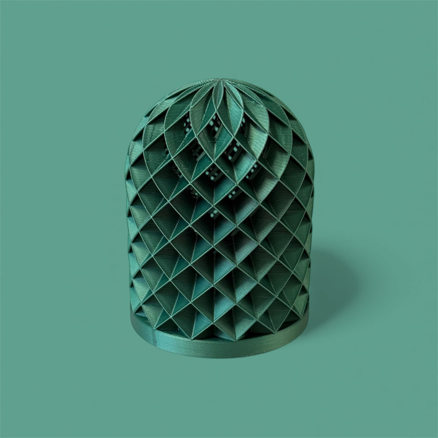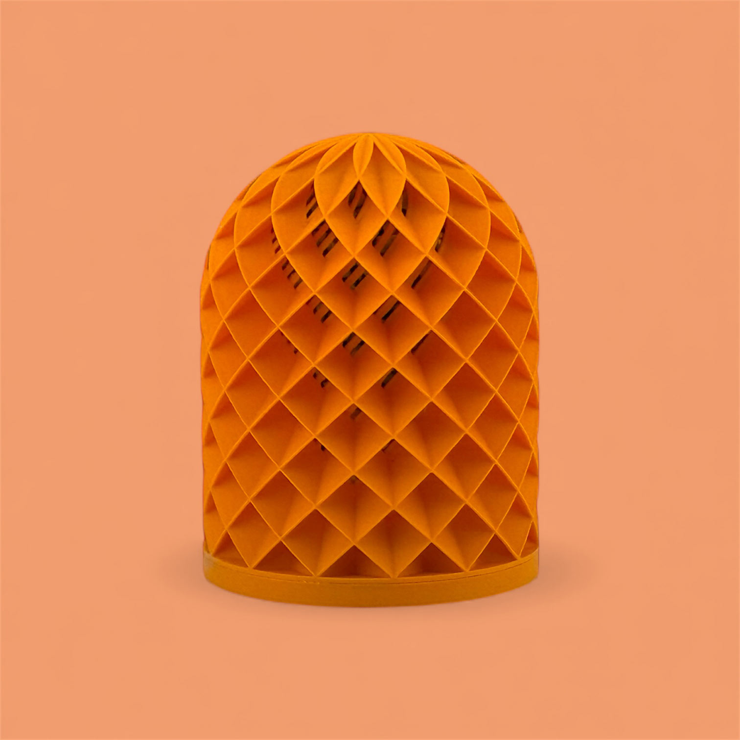 Το εξωτερικό κέλυφος παράγεται από ανακυκλώσιμο PLA και κατασκευάζεται με τεχνολογία 3D printing, εξασφαλίζοντας χαμηλή ενεργειακή κατανάλωση και σχεδόν μηδενική σπατάλη υλικού. Κάθε κομμάτι είναι μοναδικό και διατίθεται σε ποικιλία minimal και μοντέρνων χρωμάτων.