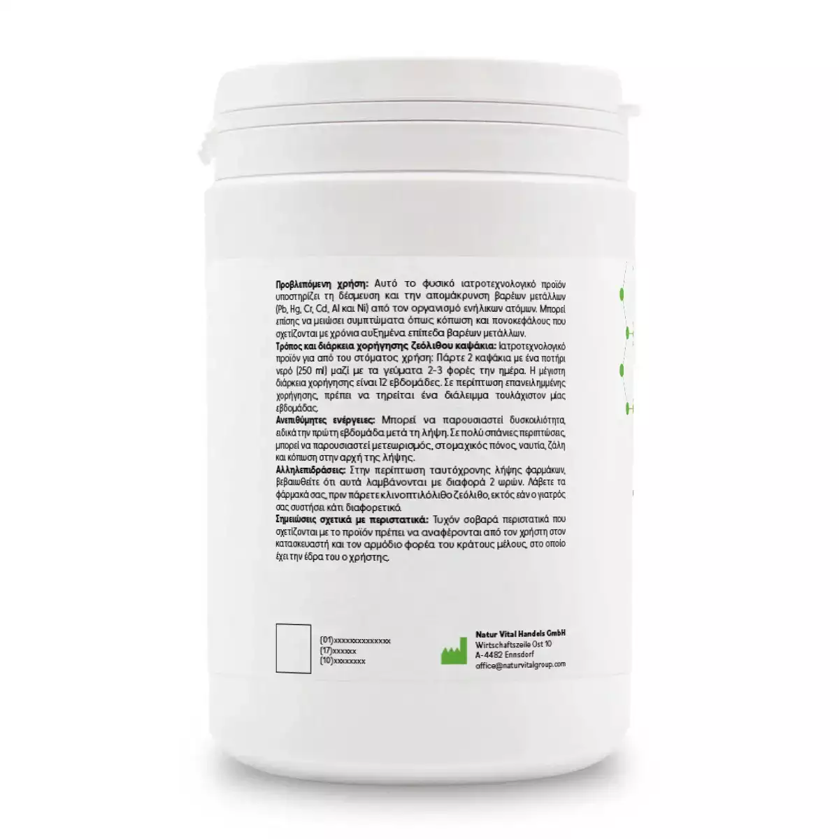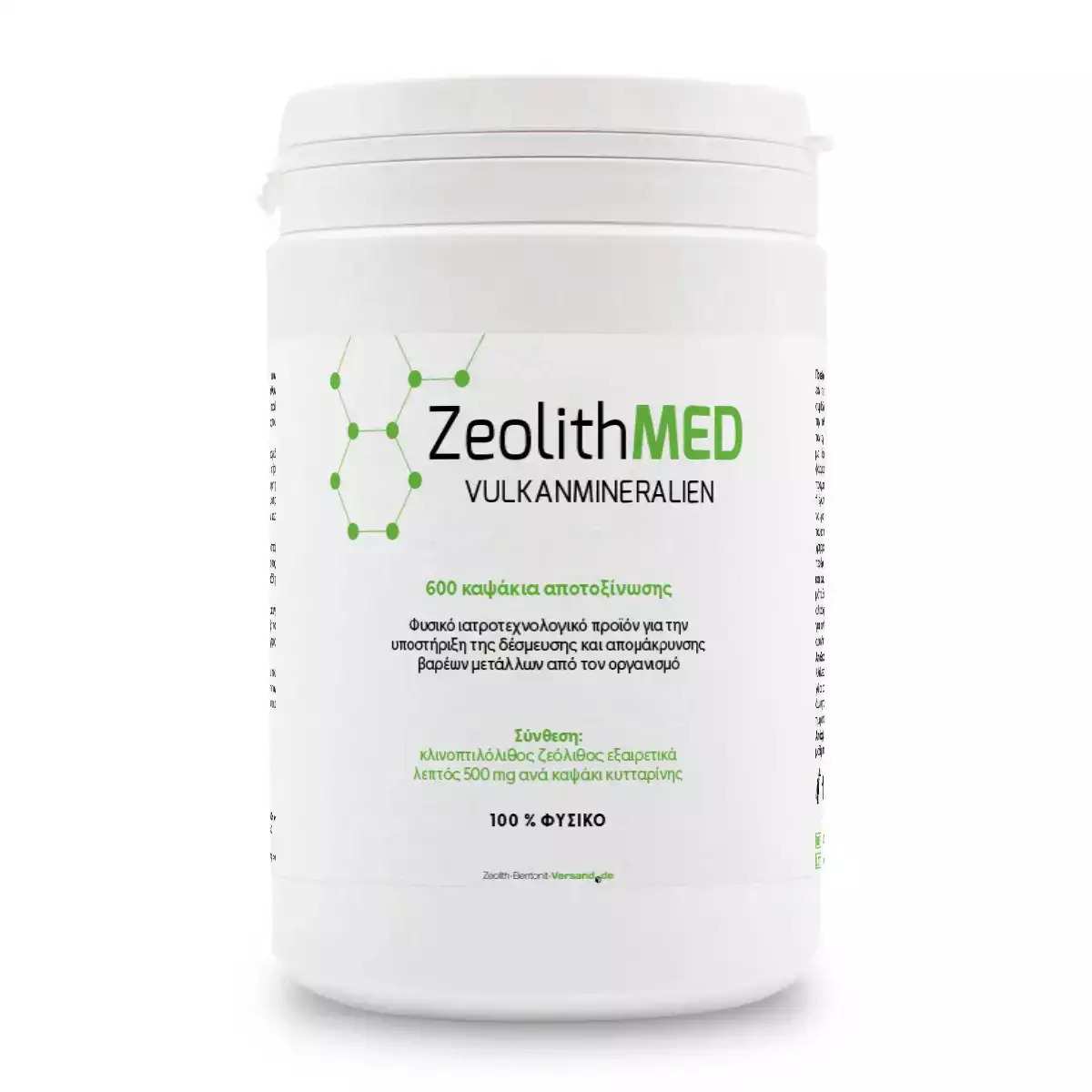 Ζεόλιθος MED® detox εξαιρετικά λεπτή πούδρα έως 10 μικρά – Κάψουλες – 600 τεμάχια, ο οποίος εξορύσσεται στη Σλοβακία, σε ένα από τα πιο υψηλής περιεκτικότητας κοιτάσματα στην Ευρώπη. Η επεξεργασία του πραγματοποιείται στην Αυστρία, όπου ο ζεόλιθος μικροϊονίζεται σε εξαιρετικά λεπτό βαθμό και ενεργοποιείται με μια πολύ ιδιαίτερη διαδικασία. Ωστόσο η φυσική δομή του κρυσταλλικού πλέγματός του παραμένει άθικτη. Ως αποτέλεσμα της διαδικασίας αυτής, αυξάνεται η εσωτερική επιφάνεια του έως και 600 τ.μ./gr, που σημαίνει ότι μπορεί να απορροφήσει περισσότερες επιβλαβείς ουσίες πιο αποτελεσματικά και στη συνέχεια να εκκριθούν με φυσικό τρόπο.